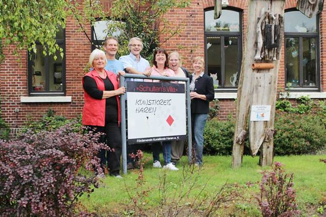 Der neue Vorstand des Kunstkreises Haren vor der Schulten Villa
